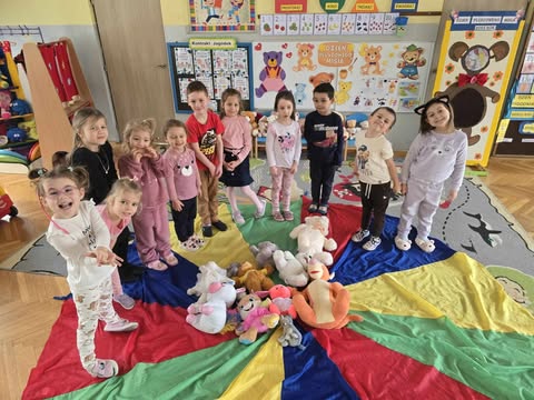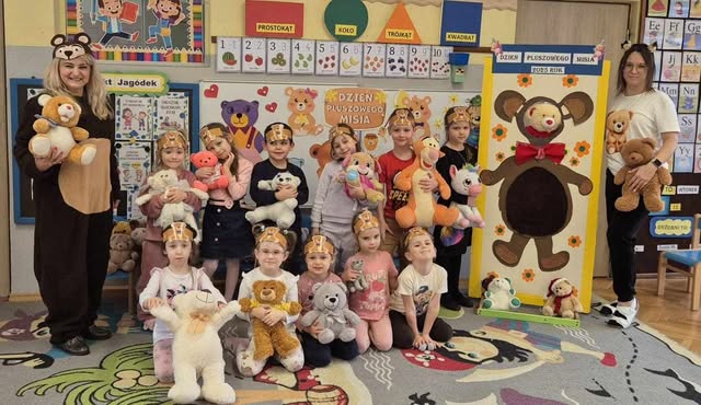 W naszym przedszkolu odbyły się obchody Dnia Pluszowego Misia, w których uczestniczyły dzieci ze wszystkich grup wiekowych wraz z nauczycielami. To wyjątkowe święto było okazją do wspólnej zabawy, integracji oraz rozwijania dziecięcej wyobraźni. Dzieci przyniosły do przedszkola swoje ulubione pluszowe maskotki, które towarzyszyły im podczas zajęć. Przedszkolaki brały udział w zabawach ruchowych, plastycznych oraz muzycznych związanych z tematyką misiów. Nie zabrakło także rozmów o bohaterach bajek oraz wspólnego czytania opowiadań. Świętu towarzyszyły słowa Kubusia Puchatka: „Dzień bez przyjaciela jest jak dzbanek bez choćby jednej kropelki miodu” – które doskonale oddały atmosferę tego dnia i podkreśliły znaczenie przyjaźni oraz wspólnego spędzania czasu.