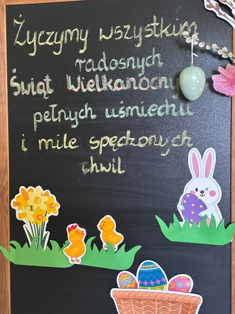 Z okazji Świąt Wielkanocnych życzymy Wam dużo radości, spokoju i rodzinnego ciepła. Niech ten wyjątkowy czas będzie pełen uśmiechu, nadziei oraz wspólnych, pięknych chwil przy świątecznym stole. Drogie Dzieci – niech Zajączek przyniesie Wam mnóstwo słodkości, a każdy dzień będzie pełen zabawy i beztroskiej radości!